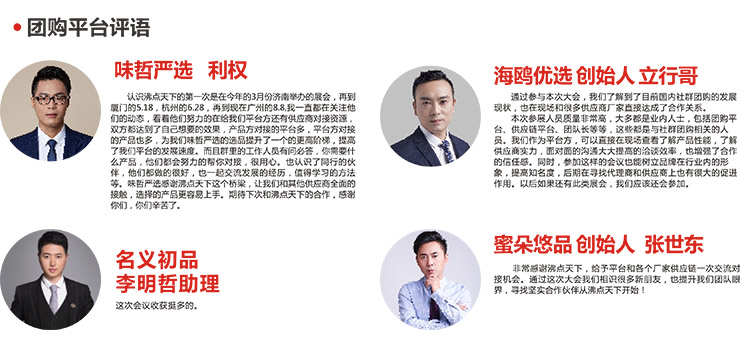 優聚惠品,味哲嚴選,名義初品,津脈閃購,悟空掌柜,純購,蜜朵優品,喜團,海鷗優選,辣媽總管,頤啟富,IBmall社區團購平臺&IBgo社群團購平臺等。