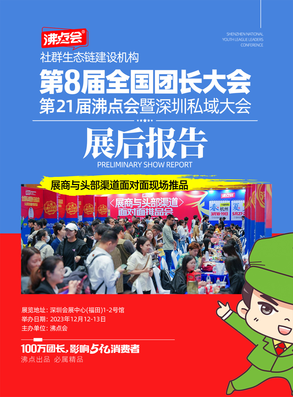 2023年12月12-13日,由沸點天下創辦,沸點會展舉辦的第21屆沸點會暨深圳全國團長選品會,全國私域大會,私域帶貨節在深圳會展中心(福田)1&2號館成功舉辦。