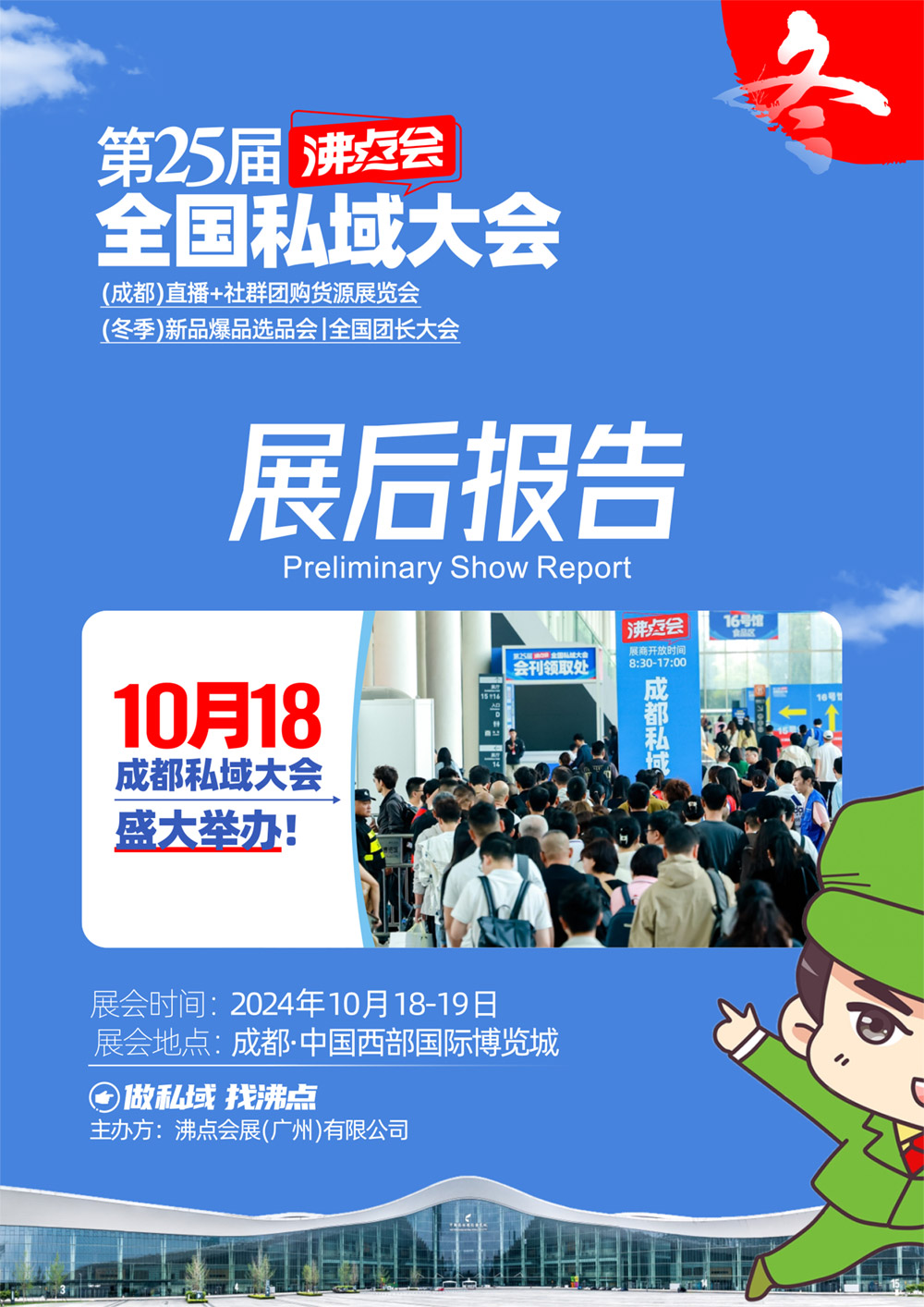 第25屆沸點(diǎn)會(huì)、成都全國私域大會(huì)暨(成都)直播+社群團(tuán)購貨源展覽會(huì),于2024年10 月17-19日在成都中國西部博覽城圓滿舉辦!同期舉辦了(冬季)新品爆品選品會(huì),本屆沸點(diǎn)會(huì)以“私域生態(tài),共創(chuàng)未來”為主題,通過一系列精彩的論壇分享、展覽洽談和精準(zhǔn)對接活動(dòng),解析私域的最新趨勢,揭秘暢銷產(chǎn)品的因素,分享實(shí)戰(zhàn)經(jīng)驗(yàn),建聯(lián)渠道合作,共同推動(dòng)行業(yè)的健康發(fā)展。