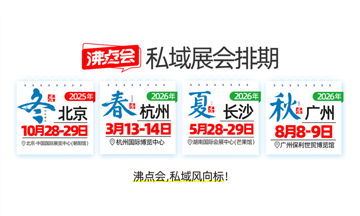 2025 年 10 月 28-29 日北京私域大會暨年貨選品會展位名額有限,98% 私域頭部渠道已就位!如需咨詢預訂、了解品類細則或獲取展位效果圖,可聯系沸點會官方團隊,提前搶占年終增長機會!